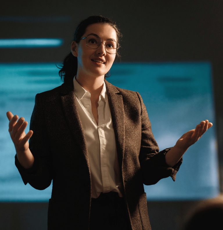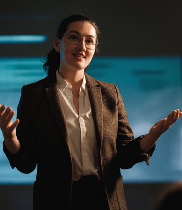 Using movement and theatre-inspired techniques, participants explore how posture, gesture, and spatial awareness influence perception and leadership presence.